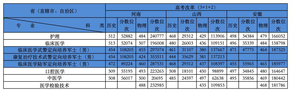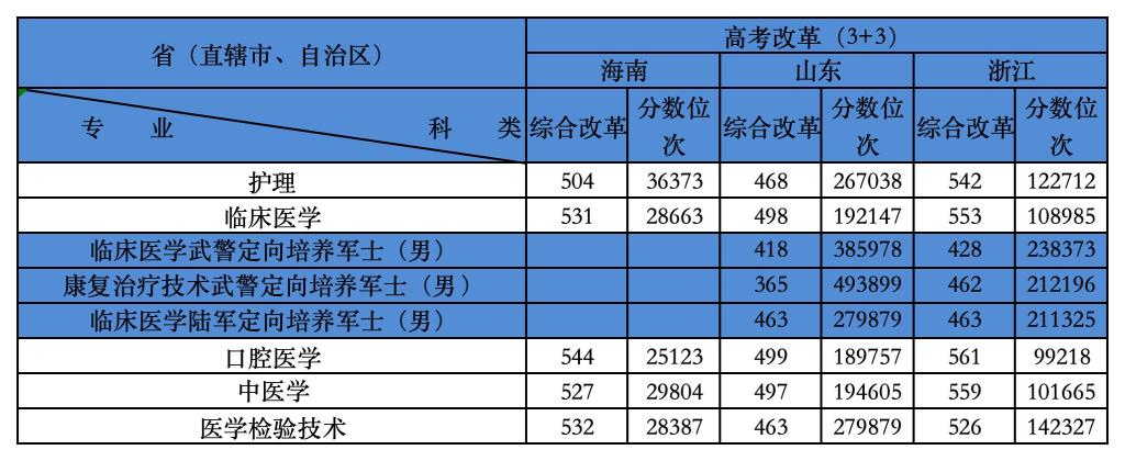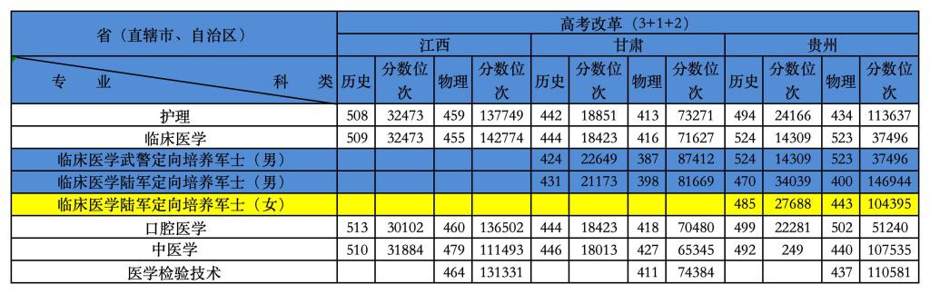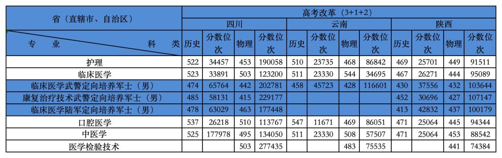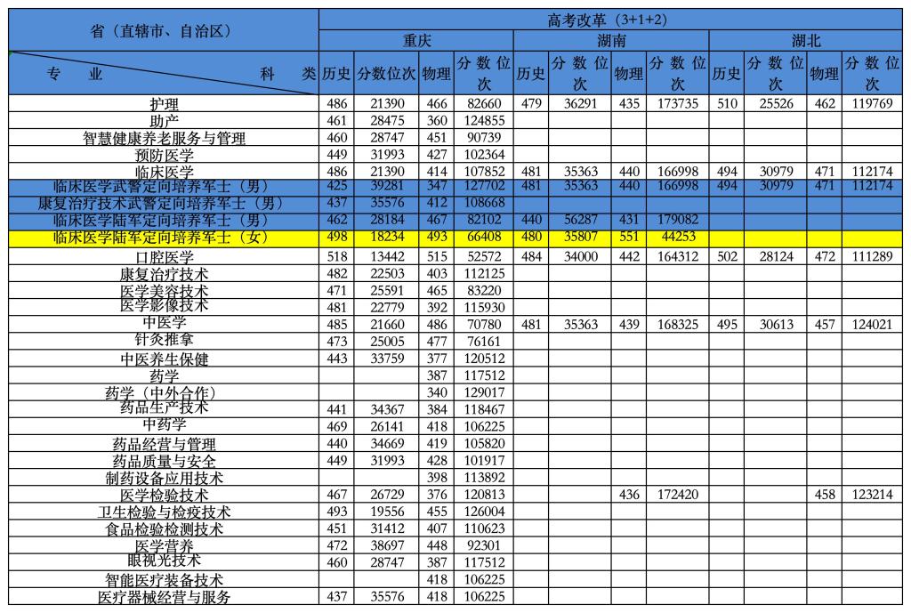 重庆医药高等专科学校2025年各省(直辖市、自治区)普通专科分科类分专业最低录取分数及位次一览表